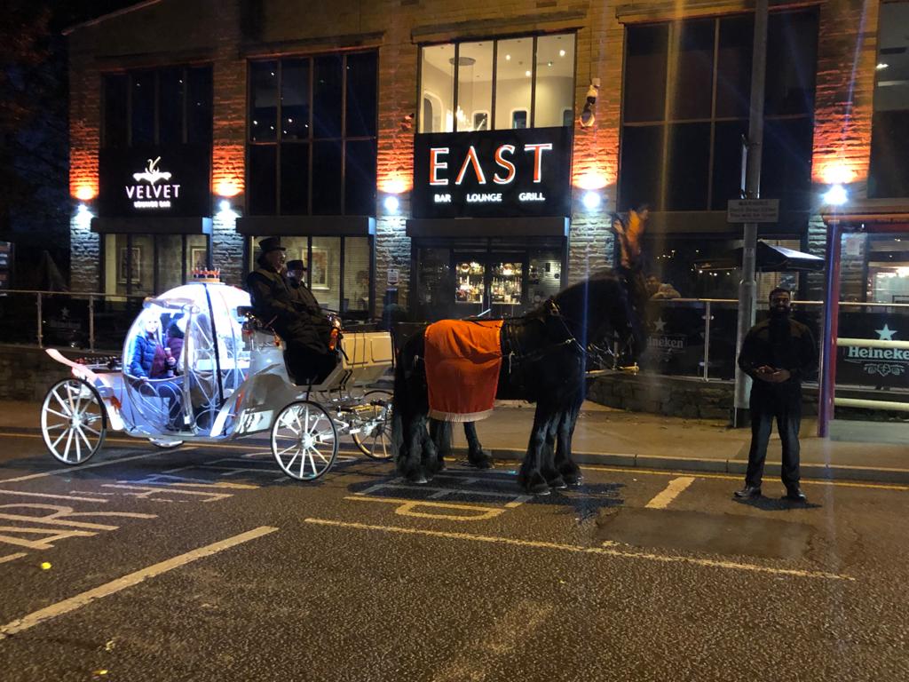 We can offer a romantic horse-drawn carriage ride for up to four people, travelling in comfort and glamour with a glass of bubbly and a box of your favourite chocolates. Plumes in a wide variety of colours are all available upon request, allowing you to tailor the experience to your own unique requirements.